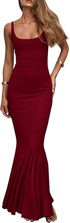 Women's Summer Bodycon Long Maxi Dress Sleeveless Scoop Neck Ribbed Knit Mermaid Cocktail Party Dresses