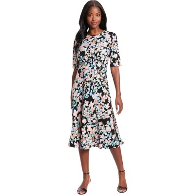 Womens Elbow Sleeve A-line Midi-Pretty Garden Party Special Occasion Wedding Guest Dress