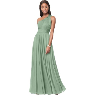 One Shoulder Bridesmaid Dresses for Women A Line Pleated Chiffon Long Formal Wedding Guest Dress with Pockets