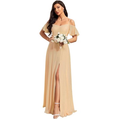 Women's Formal Dresses Off Shoulder Short Sleeve Split A-Line Floor Length Bridesmaid Dresses 0237