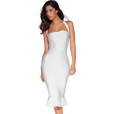 Womens Halter Fishtail Bandage Party Dress Elegant Wedding Guest Dress