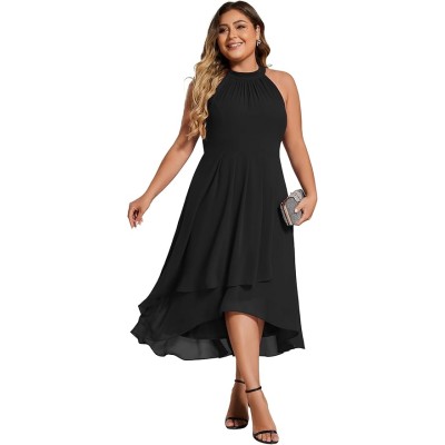 Women's Sleeveless Halter A Line Pleated Plus Size High Low Wedding Guest Dresses 31926-DA