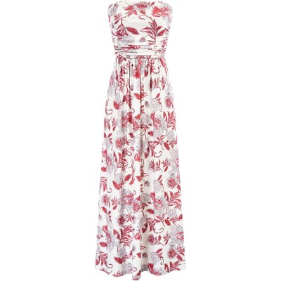 Women Strapless Casual Loose Ruched Long Maxi Dress with Pockets