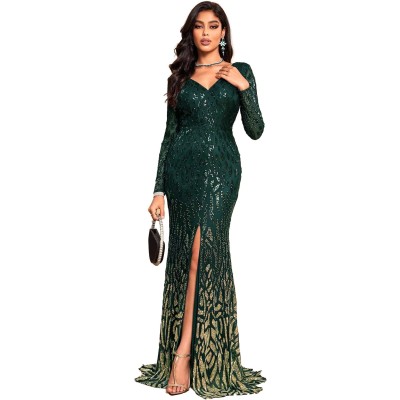 Women's Formal Sequin Bodycon Long Sleeve Prom Dresses Elegant Evening Party Maxi Dresses