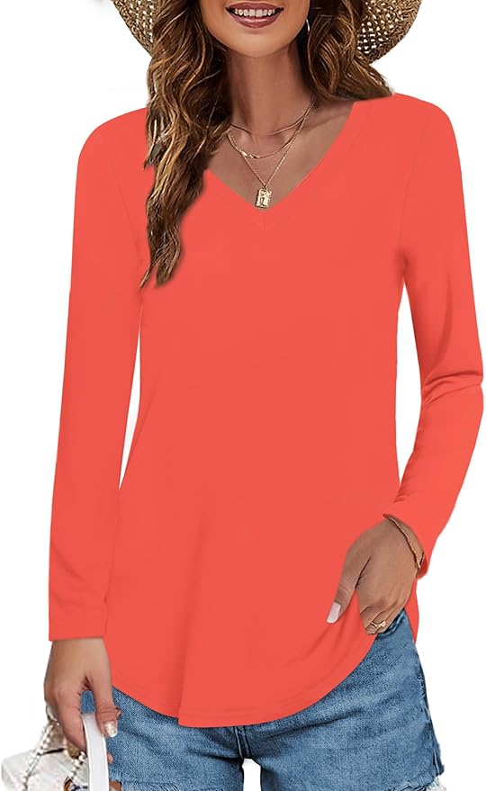 Womens T Shirts V Neck Summer Short/Long Sleeve Cotton Tops Tees