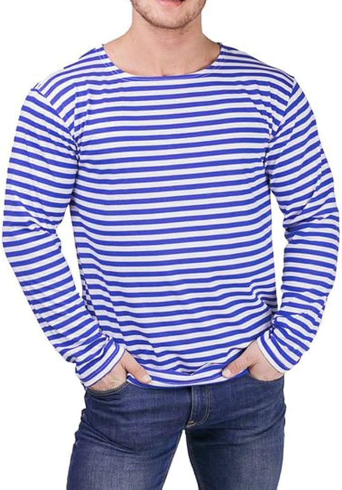 Military Army Long Sleeve T-Shirt Blue White Sailor's Striped Light Summer
