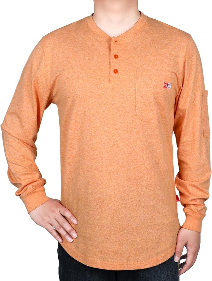 FR Shirts 6oz Lightweight Flame Resistant Long Sleeve Henley Shirt Fire Retardant Workwear NFPA2112 CAT2