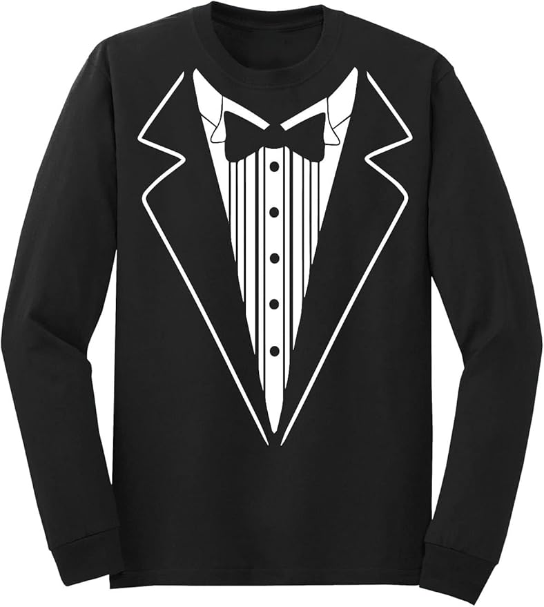 Long Sleeve Tuxedo Shirts for Men | Tuxedo White Funny Faux Fake Casual Long Sleeve Shirt