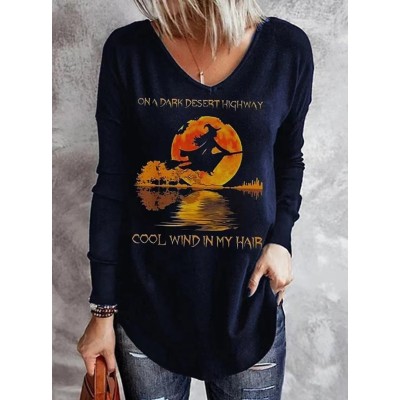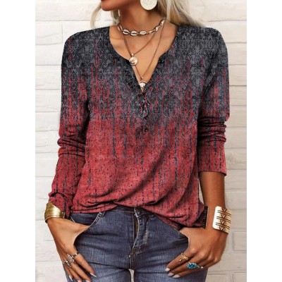 Print V Neck Tee Weekend Fashion Long Sleeve in Red
