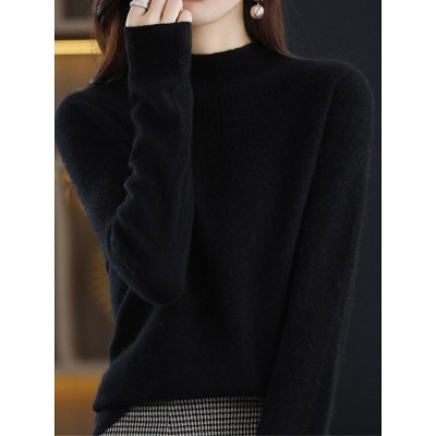 Solid Color Knitted Pullover Stylish Casual V Neck Long Sleeve