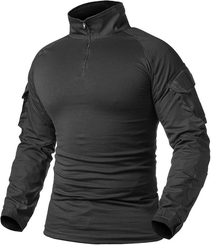 Men's Military Tactical Army Combat Long Sleeve Shirt Slim Fit Camo T-Shirt with 1/4 Zipper