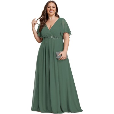 Women's Chiffon V Neck Short Sleeves Appliques Plus Size Dresses for Curvy Women Formal Dresses 01960-DA