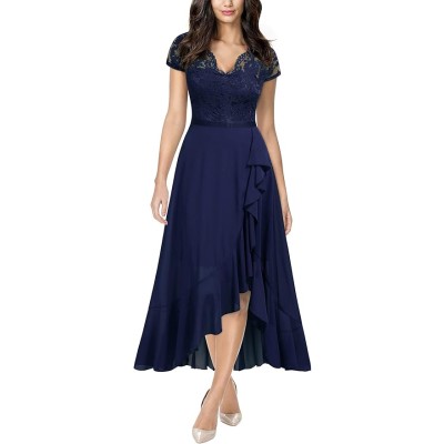 Women's V Neck Elegant Lace Ruffle Bridesmaid Maxi Dress