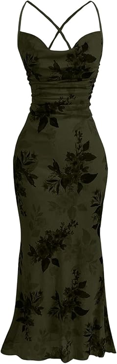 Women's Floral Print Bodycon Cami Dress Cowl Neck Spaghetti Strap Summer Long Dresses