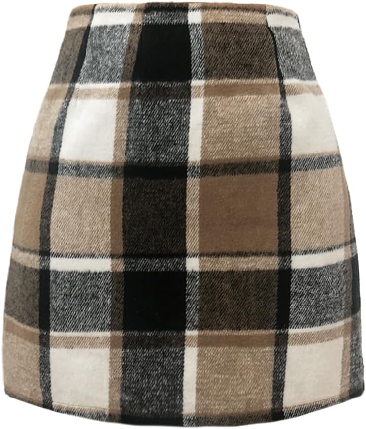Womens Wool Plaid Mini Skirt Fall Winter High Waisted Bodycon Pencil Skirt