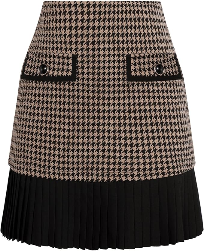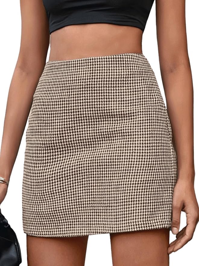 Women's Houndstooth Mini Skirt High Waist Zipper Elegant Bodycon Short Skirts