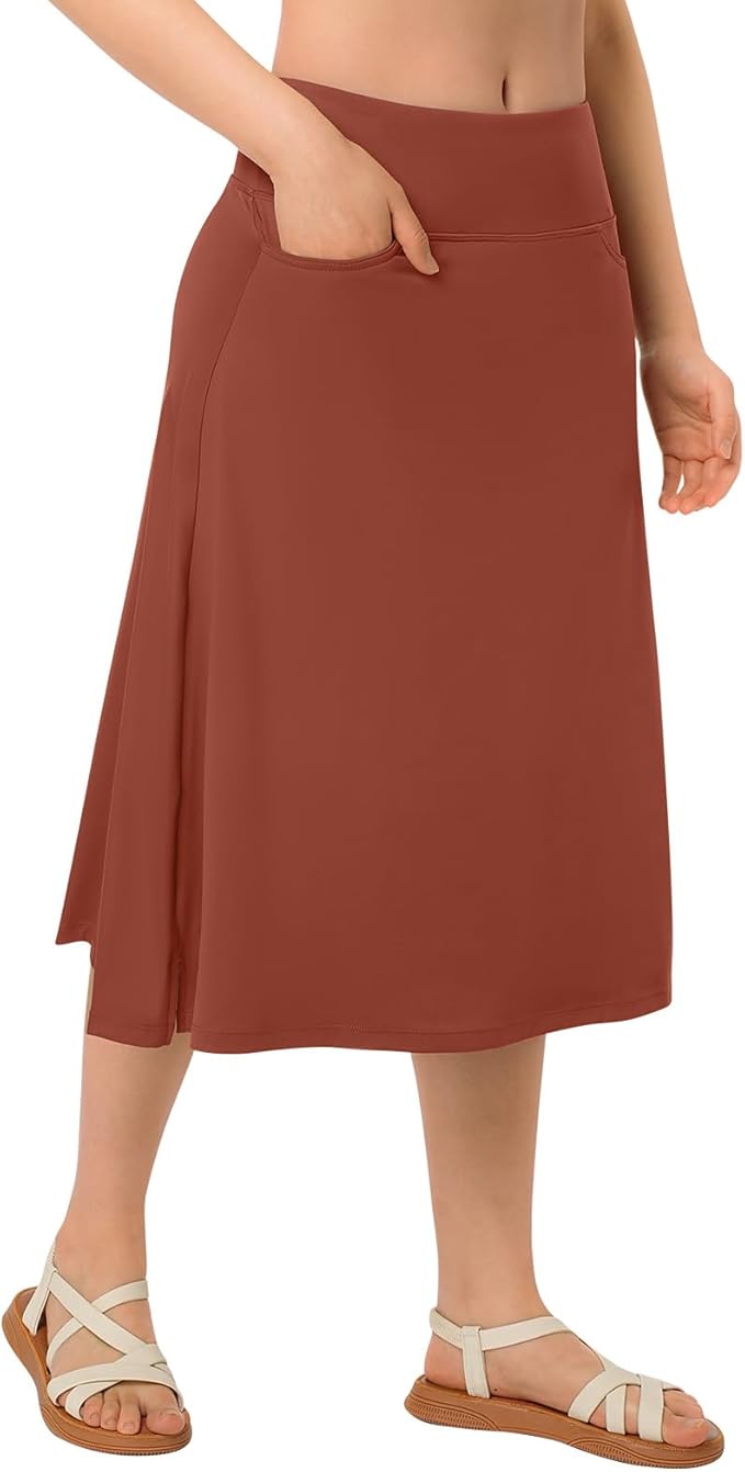 Women's Skorts Knee Length, Modest Long Skort Athletic Sports Casual Skirt with High Waisted Pockets