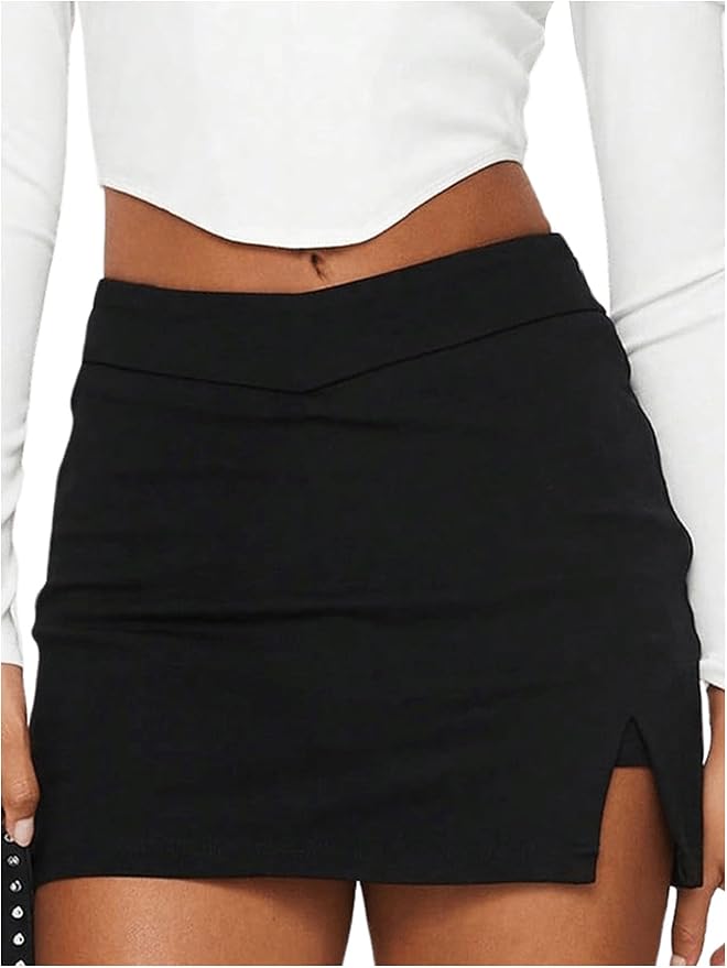 Women's Bodycon Mini Skirts Y2k Split Zipper Side Stretchy Pencil Skirts with Shorts Underneath